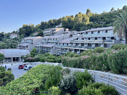 Read moreThis hotel is of exceptional quality and is located inbetween the main Skiathos Town and Koukounaries areas. It may be within walking distance to some places such as the nearby Agnadi Restaurant (also a Hotel) however the hills are quite steep up to this. There are frequent buses that pass the hotel - with the bus stop( Stop number 8) directly outside of the hotel property - you just board the bus and pay €2 for a single one-way ticket - however sometimes these buses are full and they won't stop for you if this is the case. The water taxi located on the Vasilias beach (just past the private beach area) is more expensive at around €3.50 per person but provides an easy and fun way to get into Skiathos Town and you will most often be able to get a seat on this water taxi.