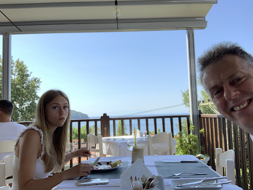 The View Restaurant at the hotel is probably the best in Agia Paraskevi. The menu has an excellent choice, the service is first class, and the food was fantastic – highly recommended.