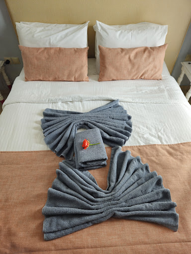 I imagine the hotel would argue that they have a lot of repeat customers, and that bookings are good, and this is maybe why the hotel and staff don't need to try to hard to offer the little bit extra, that normally creates a 'boutique' experience. We have stayed at a number of different hotels on the island, some more expensive and some less so, but we have up to this point always been made to feel welcome. We love Skiathos and will no doubt be back, but won't be staying at the Mandraki again. On the plus side the gardens and pool...