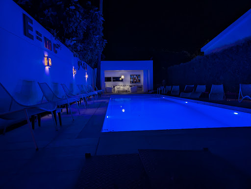 There is a pool in the back if you want to take a calming swim during the day or evening. A little cabana sits behind the pool with book lined shelves.