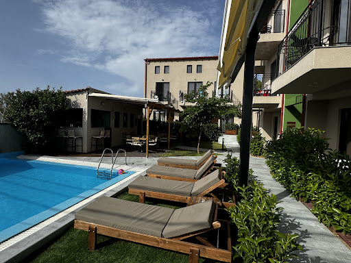 We booked the complementary pick up from the airport. Took us about 15 minutes. We couldn’t book in advance only the day before. |We were on an early flight but couldn’t have the room till 3 o’clock. ( even though we saw the cleaners leave at 1. We waited in the small reception. |The room is a good size. Good bed. Fridge, air condition, small balcony and a kettle we received 2 teabags on day one. No coffee. This was never replaced again in the 10 days we were there. 2 bottles of water provided on first day. Bathroom is a wet room which gets very messy. Individual toiletries are provided but they were never replaced during our stay. There is a problem with the sink when you ran water the smell was terrible and I mean terrible. I think there must be something unpleasant in the pipes. There is no room in the bath room to put anything a shelf etc. which is a pain. Breakfast is served in a room off reception. I found it a good breakfast. The eggs are already done and put in a warming plate. |There are 18 rooms. And a small pool with 6 beds no shade. This is the big problem. If you want to spend time by the Pool you have to be lucky. There is a bar by the pool for drinks. As far as I am aware pool towels are not provided we were never offered them. The girls are lovely in the hotel very friendly. I would come back, apart from the smell in the bathroom my only other issue would be not enough Pool beds, but if you are not interested in the pool it’s great. |It is very close to the town 8 minute walk, 5 minutes to the nearest beach. Bus stop 4. I found the...