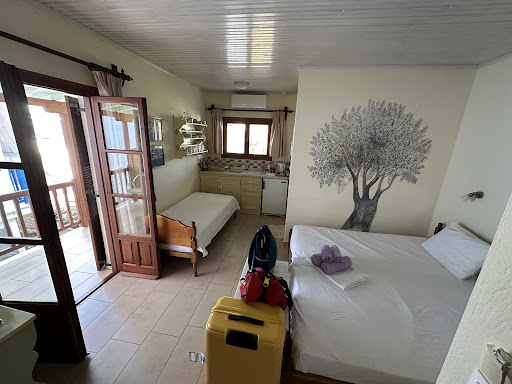 Read moreGreat location. Beautifully clean room with a good shower. Matoula is a wonderful host. We were met at the airport and taken back . Room 3 has a good sized balcony with a full sized fridge,kettle and toaster. Free Wifi and air con. Sheets and towels are changed regularly and room cleaned daily. Matoula would often put freshly boiled eggs and other treats outside our door in the morning. Supermarket is either in the town ,5 mins walk away or by the airport 15 mins walk. ||We hired a quad to get around the island but bus stops 5 mins walk and restaurants within a few metres walk.||There are a couple of clubs which had not opened close by so unsure of noise level but Skiathos is not Ibiza and remains a beautiful island. We...