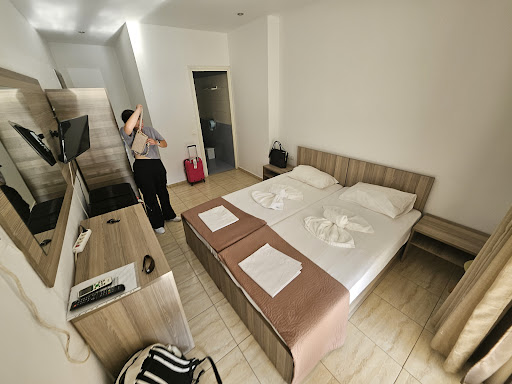 We booked the room through a travel agency called Grecos Travel and stayed there for 5 nights. First of all, even though we asked for a double bed (because we are a couple) and the travel agency said they had booked a with a double bed, we got two sigle beds side by side. When we confronted the receptionist for the bed he said that the maids didn't had time to make it look like a double bed(what kind of management is this??). The service was really bad. We had to carry our luggage 3 floors by ourselves. There was no elevato. The room was small with thin walls so we could hear everything that was happening in other rooms(we were lucky though and our neighbors weren't noisy at night). It wasn't very clean (which is very important nowadays especially because of the covid). The shower didn't have a curtain so when you took a shower the water was all over the place. The room didn't have a phone, the sheets were never changed and the room curtains were dirty and unhinged on one side. Lastly one day we had asked them to clean our room and when we came back it smelled bad, like they had used the same water to mop the entire hotel. The only reason we stayed there for our entire vacation was the location, 5' from town center.|All an all bad accommodation. Wouldn't...