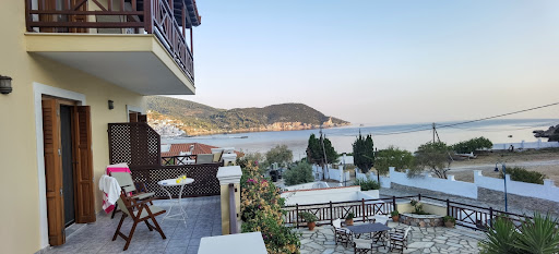 Within walking distance from the town, but much calmer than there. Almost directly at the sea shore with a beach nearby. Of course there are much more beautiful beaches on Skopelos, but for a nice swim in the morning this is fine. Also a very good fish restaurant (Muses) is very near. We had a small double room, but with a huge private terrasse. The view from there is marvellous. The room was clean and tastefully equipped, with everything you need (it has a fridge and a small cooking plate for making coffee - it is not meant to be an appartment with a kitchen. The owner was very friendly and helpful. He picked us up at the ferry and brought us back there, and gave...