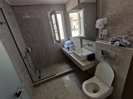 Read moreAcross from the Keramoti ferries and slightly north the is a market just before a little bridge. The lane alongside will bring you to.the hotel Egeo. This is a lovely, clean, comfortable and conveniently located lodging. Every room has has a balcony with plenty of space for a table two chairs and a little nook with a built in clothes drying rack. A slew of restaurant/tavernas, shops and a beach are all within 900 meters. There is ample parking and being at the quiet end of town provides a relaxing environment and easy access to hue main road leading to all parts of the island. The Egeo just reinforced the notion that we made a serious mistake staying overnight in Keramoti. The are so many ferries to Thasos that there is no reason to waste time in that port town. I cannot emphasize enough how overpriced the Filippion was compared to the Egeo here on the island. You can take an early morning hike to the Acropolis for a panoramic view of the village and still make it back for breakfast, which, though not spectacular, is still the type of fare one would reasonably expect. It's a big island so a car is a necessity to access the best beaches. Ala in all, the Egeo provides accommodations that are very likely the best value...