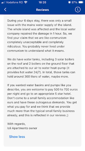 Quiet and comfortable apartment hotel run by a family who are easy to reach if needed and who treat their guests very well. The apartment we rented was a good size and the cleaning lady soon realised that we were not guests who would be up and about early in the morning and she fitted her times for working in our apartment with our own personal timetable. We have been looking for a place to replace our previous regular hotel in Limenas which has been sold and uppgrade to a class we can no longer afford and this is it. We have already booked for next year. A longer walk to our favourite beach than we are used to but much closer to town although none of the noise is noticeable in the hotel area. The owner comes and sees his guests off when they leave to fly home in the early hours of the...