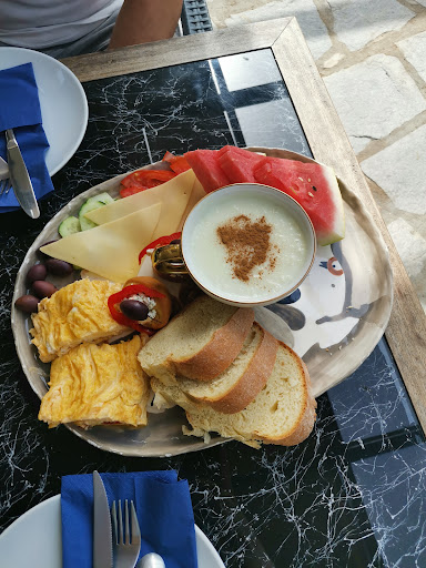 A highlight of the hotel is the excellent ‘private dining’ offered by the owner Sofia and her amazing assistant Valentina. Evening meal menus are agreed in advance and the meals are outstanding particularly Sofia’s prawn saganaki! The salads are fresh and delicious . The meals are competitively priced too. For breakfast Valentina prepares amazing hot and cold selections on big trays. We particularly enjoyed the Greek yogurt with local honey and crushed walnuts. The venue for the meals outside is amazing too.