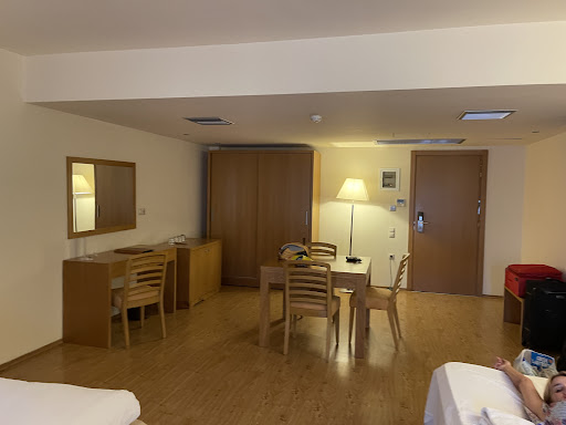 Read moreThe hotel does not quite live up to 5-star standards, although it has a few positive aspects. The room was large and spacious, but poorly ventilated, with signs of dampness – which can be an issue, especially for guests with mold allergies. In the bathroom, several details required attention: the sink faucet was broken, the bathtub had no plug, the jacuzzi system was out of service, there was no shower curtain (making showers uncomfortable and slippery), and the entrance door was damaged. Additionally, the cabinet housing the fridge was swollen from moisture.||Regarding general facilities, the absence of a terrace or balcony was a drawback. The air conditioning in the hallways was not working, and there was a persistent smell of fried food from the kitchen, combined with stained carpets in the corridors, which created an unpleasant atmosphere. At night, the noise from the air conditioning compressors was disturbing.||As for the beach, I did not ask or check about its location, but the photos might give the impression that the hotel is right next to it – which is not the case.||Breakfast was generous, though not very varied. Overall, the experience felt closer to a 3-star stay rather than...