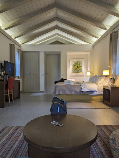 As you can see from the bulk of my reviews, I spend most of my vacation time under water instead of up in the mountains. I'm willing to make an exception for Zagori, as it is a magical place; scores of villages caught out of time like butterflies trapped in amber. Plenty of sports (rafting, hiking, etc. and apparently serious bird watching which I can't speak to, considering I doubt I could distinguish a sparrow from robin). ||||The thing about traveling in relatively remote areas in Greece is that the accommodations tend to range from either (rarely) 1960's era almost Hiltons with indifferent service, or small inns, some quaint, but most (in my experience) a little too rustic in terms of basic amenities. Maybe charming for a couple of days, at most.||||Not so Monopatia. The closest comparison to Monopatia is with one of the small Aman resorts, before Aman became 100 plus room hotels. Except instead of an Asian theme, its has Greek/Italian theme. Stylish, in other words, but understated.||||I wasn't going to mention this....lots of acorn trees....lots of wild pigs in the forests....see where this is going? Truffles, in season, and the hotel can arrange for foraging...