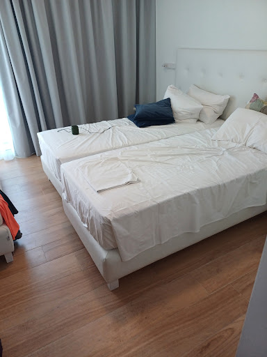 La camera era piccola e scomoda, con un terzo letto chiaramente aggiunto in modo provvisorio, che sottraeva ulteriore spazio già ridotto, nonostante avessimo prenotato per 3 adulti. Al nostro arrivo, la prima doccia ha causato l’allagamento del bagno a causa dei capelli presenti nello scarico: un segnale evidente di scarsa manutenzione. La pulizia in generale era approssimativa: i letti venivano rifatti solo parzialmente, con le lenzuola lasciate ai piedi del letto ogni giorno.