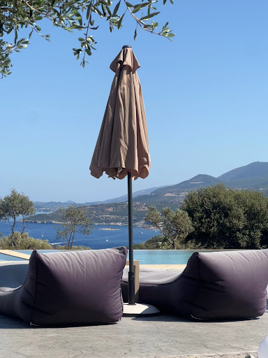 The property and pool are recently renovated, so everything feels brand new and very well taken care of. Our room was spotless and had everything we needed and even more! An emergency kit, pool towels, a wide selection of coffees, a hair styling appliance, and even fresh grapes from the vineyard waiting for us in the fridge. The view from the room was breathtaking: overlooking the pool, the mountains, and the endless sea.