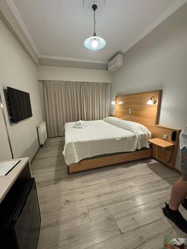Overall, the location is the only good thing about this hotel. Except for the receptionist Philippos, and the bartender in the cafe, the staff is extremely unwelcoming and rude - customer service and satisfaction is close to null. Although the rooms look like they’re refurbished, our room smelled like sewage despite efforts of cleaning it up, the AC does not work properly, there is no complimentary coffee and water was only offered the first day of our stay. Another couple’s room even had cockroaches! Also, we could never seem to find a parking spot nearby as it’s always rush hour in the center and the hotel does not provide such services. The worst experience was the cafe - the breakfast buffet is very cheap with limited varieties given the food culture of the country and food was always served cold. It looked like the cafe waitresses are deliberately being rude. At one point, one of the waitresses screamed at me from across the very busy cafe for serving myself coffee from the breakfast buffet. She was scared i would break the handle!