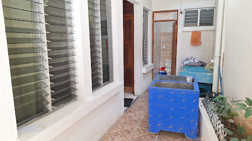 Read moreNicht einfach, hier eine angemessene Bewertung abzugeben: Wir durften schon um 13 Uhr einchecken, wurden sehr freundlich empfangen, hatten überhaupt super freundliche Gastgebende hier kennenlernen dürfen, das Zimmer hatte eine vernünftige Größe, das Gemeinschaftsbad war sauber und alles funktionierte wie erhofft. Es gibt als Bonus sogar ein kleines Frühstück bestehend aus Toasts mit Butter und Marmelade. Dazu gabztägig gratis Wasser. Soweit alles top. Allerdings ist Zimmer 1 eine Katastrophe hinsichtlich Ruhe und Privatsphäre: die Überwachungskamera filmt direkt durch die geöffnete Tür ins Zimmer hinein (auch, wenn man gerade durch die Tür geht). Der Ventilator wirbelt selbst auf der geringsten Stufe wie ein Propeller-Flugzeug mit entsprechender Lautstärke. Zeitweise zyklisch von stark bis schwach, ohne eine Einstellung zu verändern. Dabei nehmen die Vorhänge der zum Flur gerichteten Fenster eine Position ein, sodass man durch diese super reinschauen kann. Da es keine Scheiben, sondern nur einen Mückenschutz gibt, gibt es auch keinerlei Geräuschdämmung. Die Türen werden von allen Menschen nur geknallt und verfügen ebenfalls über keinerlei Schalldämmung. Auch der Lärm von der Straße kommt ungefiltert rein. Aufgrund der Tikal-Touristen hier endet der Schlaf somit ab spätestens 5:15 Uhr. Es wird ab kurz vor 6 dann zwar ruhiger, aber ab 6 Uhr werden dann die Zimmer und das Bad gereinigt. Ebenfalls alles laut und das Gemeinschaftsbad ist irgendwann zwischen 7 und 8 gerne mal etwa 15 Minuten gesperrt. Warum nicht wenigstens die Putzfrau später zu arbeiten anfängt, bleibt ein Rätsel. Bezahlt werden kann nur in bar, nicht mit Karte. Zudem fehlen Möglichkeiten, um Kleidung oder Handtücher aufzuhängen. Zusammengefasst hat uns dieses Hostel eigentlich super gefallen, aber achtet dringendst darauf, Zimmer 1...