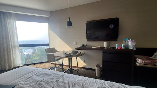 Read moreVisited Guatemala City during the February 2014 for 9 days. Originally planned a vacation to relax at the hotel and stay in-town. After arriving at the airport, you walk out to the pickup area. A gentleman with a sign for three of the hotels that included Holiday Inn. He took my luggage and put it into the van with 6 other people. Plenty of space an comfortable. The hotel is located in an area of Zone 10 that is very safe. Checked in by the front desk attendant named Evelyn. She was courteous and had a nice smile. She checked me in quickly and offered me a complimentary snack. Sweet or salty. I choose the sweet cookies. I received 9 coupons for the breakfast buffet on the second floor. Lovely lobby, but only 2 elevators. Usually you had to wait 45 - 55 seconds for the elevator to reach the bottom. I was located on the 12th floor. Room 1208 was at the end of the hall on the right. Generously sized room with a big bath and a balcony that looked down on the Hard Rock hotel. The televisions are HD, but the channels are not. There are HDMI ports on the back and not easily accessible. There is a desk with two electrical sockets (110V) on the front. A definite plus. Bed was King size and very soft. Four pillows, 2 soft and 2 firm. Bathroom had all the usual amenities and coffeemaker.