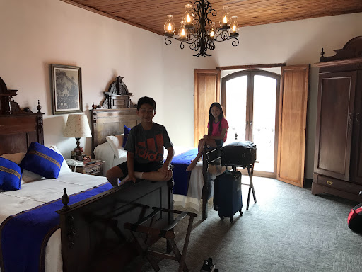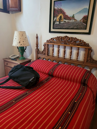 Stepping into Hotel Posada de Don Rodrigo was like taking a journey back to the early days of the Spanish colonial city in Guatemala. The doors, ceilings, courtyard, floors, and decor capture that time to make staying at the hotel like living in a museum. ||The hotel is lovingly restored and maintained. My favorite room was the restaurant with a spectacular intricate carved wood ceiling painted green and other colors. There's a wonderful old fountain on one wall. In the mornings and evenings, a band plays Spanish music. At night, dancers in costumes perform as well. The room, performers and excellent food and drinks make a visit to the restaurant a don't miss event. When we came back to Antigua a second time before our flight out, we decided to go back to the restaurant for dinner again because we loved it so much. We especially enjoyed the beef tenderloin and sangria. ||The courtyard is lush and green, with a series of colorful paintings set on easels capturing various sites, and flora and fauna of Guatemala. Flowering plants and the chirping of birds add to the ambiance making for a romantic and charming setting. ||The rooms line the courtyard with eclectic sitting areas with furniture consistent with the colonial era. There are large pottery urns sprinkled throughout providing water for drinking. ||The contrast between the hectic street right outside of the hotel, smack in the middle of all of the action, and the serene open hallways and courtyard is striking. ||We were a bit disappointed our room was very small with just a standard double bed. My husband is 6 foot 6 and it was snug. The only window was a hinged opening in the heavy dark wood antique door out to the courtyard. There was no safe in the room which concerned us because we didn't want to carry all of our cash with us. ||We ended up hiding money in the room. I suspect we didn't need to work so hard to hide it because when we left money out to tip the people who made up our room, they didn't take it. This happened in other hotels in Guatemala as well. There's security at the front door and the staff members were all warm, friendly, eager to assist, and competent. ||We didn't expect air-conditioning, and there wasn't any. During the day, the room did get a bit warm and stuffy, but by evening, it cooled off enough to be comfortable. ||Despite the hotel's age, it was spotless and well-maintained. We ended up staying in three different hotels in Antigua during our trip. This one was my favorite, despite the small room, because the attention to every detail was so thorough. It is an unforgettable place and among the highlights...