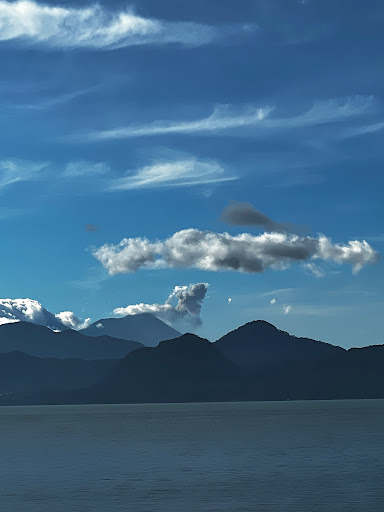 We loved our three nights at Casa Alegria. Santos is the best host, friendly, hospitable, and a pleasure to talk to. The showers have hot water the rooms have ample storage for clothes and places to hang towels, etc. Santos built Casa Alegria himself and is rightly proud of his efforts. We didn't use the communal kitchen but it appeared to have everything one would need. The roof top and porches have laundry lines to dry clothes and have excellent views. I got some early morning photographs of Volcan Fuego erupting in the distance. Be sure to check it out before the clouds roll in. And the two perros de la casa are sweet. Two thumbs up for Santos and...