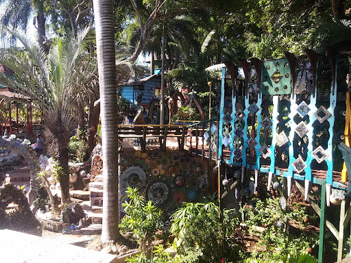 If you want luxury or cheap accommodation this is not the place for you. However, if you enjoy staying somewhere truly unique with friendly service then come to Jade Seahorse. The decoration of the gardens, rooms and restaurant really do need to be seen to be believed. Someone described it to me as Gaudi meets Dr Zeuss, which is as good enough description as any but neglects the natural beauty of the gardens. The artwork will amaze you but the trees and plants are also well tended. We stayed in Fantasea which also had upper decks, the final one above the canopy where you could look out to sea or watch the stars. ||Unfortunately only dinner is served not breakfast or lunch but there are lots of good eating options in the area (Mango Inn or Thompsons Bakery to name two). Dinner is vegetarian and excellently spiced and seasoned. You can also eat appetisers in the bar which serves well mixed, well priced cocktails. The cocktail of the day is usually a bargain. The bar area is up in the trees and is made of dark wood. It is sometimes busy which can make the gardens noisy but you can block out the noise if you need to by closing the windows and putting on the air conditioning. The bar does not stay open late and often there is enough natural ventilation through the screened windows to not need air conditioning.||At the end of a week you will still be noticing small interesting details in your room and about the property. Somewhere for people who enjoy the unusual and can appreciate the care and attention that the owner has put into creating this, ongoing, work of art.||Even if you don't stay here do come and have a look, visitors to the gardens are welcome and are encouraged to leave a donation to enable further development. Come late afternoon to see the gardens in daylight and then have a cocktail in the bar as the...