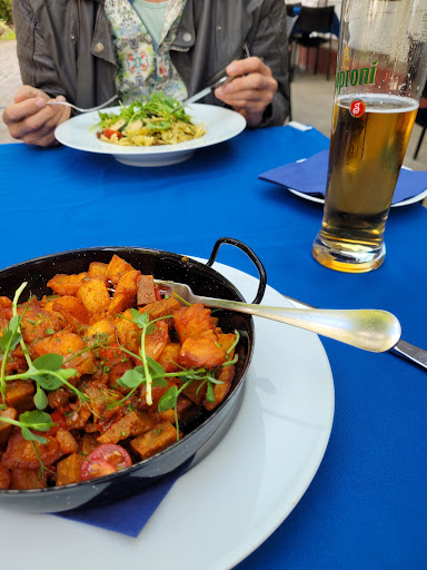 we came here because it was the only restaurant close to the Danube and were pleasantly surprised to find 5 vegan dishes. The menu was in Hungarian language only, but the waitress spoke enough English, to advise us well. The food came quickly and was very nicely presented and very good taste. The sports club with many little huts looks a bit run down, but they seem to have started renovating them. Definitely...