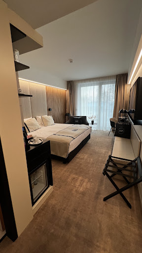 People at reception are really nice, very helpful very smiley, but you get the feeling that they don’t understand you half the time. When we arrived they suggested we book dinner at the hotel restaurant, & the hostess suggested 6:00pm or 9:30pm, we both heard these numbers very clearly & chose 9:30. We got ready, dressed up & were hungry, we entered the restaurant & told them about out booking only to be told “IMPOSSIBLE the kitchen closes at 9:30”. What kind of hospitality training instructs staff member to say “IMPOSSIBLE” to a customer’s face? We’d tried to take it up with staff at reception & we were told there’s nothing they can do, all restaurants in the area were closing & had no choice but to go to bed hungry, they said “We can offer you..” & we thought it would be compensation or something but no it was the room service menu which consisted of a sandwich & bread & cheese. Eventually the hostess with which we made the reservation arrived, & absolutely insisted that she did not say 9:30, practically calling us liars to our faces. There was no more trace of the smiley face we saw at check-in. Eventually she would return & beckon us to the restaurant like she’s done us a great favor. To her credit we did eventually get dinner but as she sat us down she repeated that she didn’t know who’s fault it was. Clearly the money spent on hospitality wasn’t worth it. Most likely this misunderstanding stems from the fact that in hungarian 8:30 is expressed as “half to 9” & that was why she misspoke, but there was zero consideration that it could have been her mistake & the blame was put squarely on us.