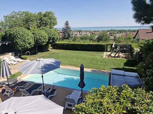 Read moreA rozmaring szobában szálltunk meg, csodás balatoni panoráma tárult elénk a teraszról. Ez a szoba nemrég lett felújítva modern bútorokkal, ízlésesen berendezve. Ami még a panoráma mellett nagyon szembeötlő volt az a nagyon alapos és gyönyörű tisztaság mindenhol. A ház többi része is nagyon szépen karban van tartva és minőségi kikapcsolódást tud nyújtani. A kertben griliiezési lehetőség is van, valamint medence és szauna is segít lazulni. Tekintve, hogy fent van a hegyen ezért a Balaton partjára lesétálni elég sok idő, bolt sincs a közelben, így mindenhova autóval kell menni. Az egyetlen negatívum, hogy az internet sajnos nagyon lassú és instabil, sokszor kellett inkább saját...