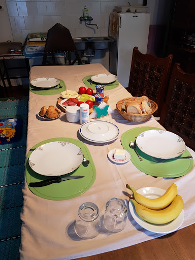 Later I came back to the dining room because the wifi wasn’t working upstairs. Albert came in & said “you can’t sit here, this is a family room”. I explained about the wifi & that I didn’t know it was a family room as it was where I’d been directed by Judit. He almost dragged me out and showed me a dining room for guests which I hadn’t known about. I asked whether I could leave my luggage for a few hours the next day and was told I could. He said his wife would make a breakfast in the morning for guests. But the manner was really rude and antagonistic so I felt uncomfortable & thought I’d skip the breakfast.