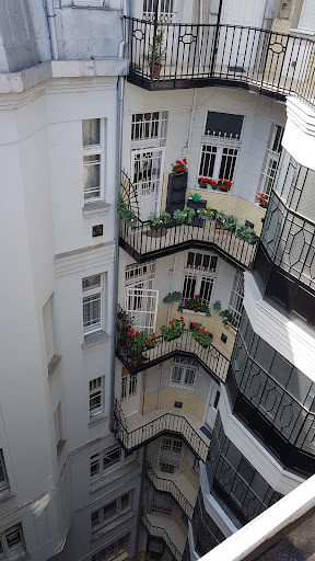 La posizione vi permette di girare tranquillamente a piedi nell attigua zona pedonale, o vi consente di avere a diaposizione fermate di autobus tram e metro nel raggio massimo di duecento metri. Negozi e ristoranti di tutti i generi e alle apalle del palazzo la piu rinomata pasticceria di Budapest. Lascio per ultimo un commento sul signor Sandor, un gentiluomo che ci ha offerto anche i fiorini per pagare il parcheggio, in attesa di poter trovare modo di cambiare i nostri euro. Registro dei documenti e ricevuta di pagamento hanno completato il nostro incontro. Tornerò...