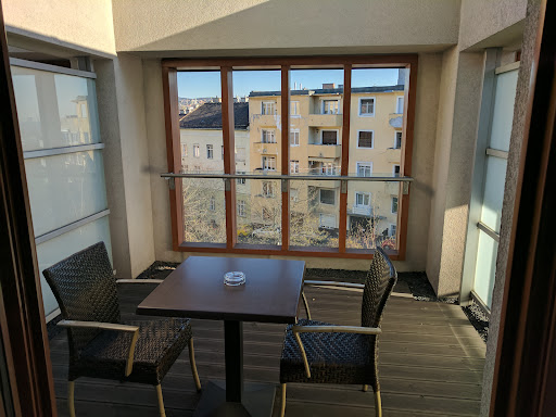 Read moreThe location of the hotel is very convenient, just a few minute walk to the Metro and tram lines and also just a few minutes from the Castle district. I stayed for 5 nights. Unfortunately the cleanliness of the hotel was severely lacking. On the first day I found long black hairs in the bathroom but didn't think much of it. The broken state of the shower was more disturbing. One morning we accidentally dropped a water glass in the bathroom and picked up all the big pieces. We told the front desk that there are small glass pieces on the floor to make sure the cleaners wouldn't hurt themselves. That evening when we came back the glass was replaced but nothing had been cleaned. The same glass splinters still were on the floor, the sink was still dirty, soap/shampoo not refilled, beds not made, etc. When we asked the front desk to have someone come by to vacuum the bathroom floor they could only find a broom and brushed it to the side. I then used a towel to sweep the floor again to make sure there was no glass left to find the white towel now looking like a used rag. I guess it has been a while since the tile floor was actually cleaned wet. At the end of our 5 night stay we still had the same message on our mirror that a previous guest wrote on it with their fingers.
