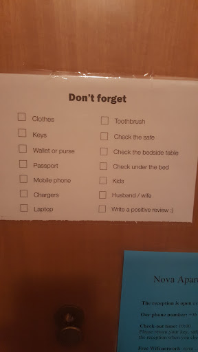 Read moreWe had a great experience at the Nova Apartments. The location could not have been better, being within walking distance to most popular places to visit and is right next to lots of good food options. The reception is in a separate building which would have been good to know to avoid confusion upon arrival. The staff were helpful and open to giving any help needed. The building itself is very busy, lots of people going in and out which we found helpful because lots of people had confusion as to where to put the fob to get access to inside the building. The inside of the building is VERY dark and was a little unnerving. The lights are on timer and only come on when you push the individual switches which means you mostly walk into each corridor in blackness. Definitely prepare with a phone torch!!|Our apartment itself was very big, had heating, air-con, tv, hair dryer and kitchen utilities. They offered welcoming coffee etc and a personalised note. From other reviews, it does appear to be pot luck with what apartment you get and how sound proof it is. Ours was on second floor and we barely heard anything, only the occasional noise from neighbours.|The internet is very bad but we found that connecting to the other rooms...