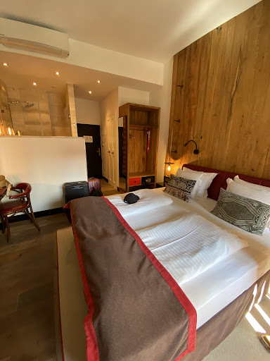 The bathroom was an open solution, but seperated from the sleeping areal with a divider wall. (so if you're not staying by yourself, I recommend you share this suite with someone you're familiar and comfortable with 😉 There is a curtain for the bath area, but it's see-through, so it's not for the shy) Oh, and the toilet is hidden behind what seems to be cupboard doors, quite cute actually, but again, you should be sharing the room with someone you're comfortable with 🤷 The bed was - for me - good, because I prefer a hard mattress, but I guess this could be a goldilocks scenario. If you prefer to sink into a soft mattress, you might have a rough night ahead..