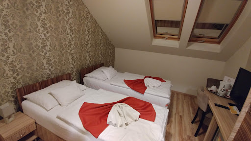 This is a perfect little hotel if you have a late evening arrival or early morning flight, Around 20min from the airport at most. Small hotel well run, clean, comfortable, good size room with fridge and coffee maker, some rooms have balconies. We were given a complementary beer on arrival. The hotel does not serve dinner there is not much close by but we understood we could order pizza takeaway. As we were driving we took a short drive to a shopping centre. Bear in mind on Sundays most restaurants are closed in Hungary, it is really difficult on Sundays to find somewhere to eat. We left early the next morning for us it was just a convenient place...