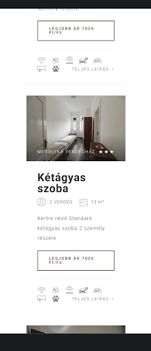 Read moreTechnikailag egy munkásszállás hétköznap és hétvégén is, becsekknél többet kérnek mint a foglaló összege, (7k az oldalon de személyesen 7.5k). Nem azt a szobát kaptunk amit kértünk, reggel csörömpölésre és takarításra ébredtem fél nyolc körül. Parkolni nehézkes mert vagy vonalon áll meg aki jön vagy a kapuban de erről se az üzemeltetés tehet de nem is érdekli. Számomra rettenetes élmény volt.