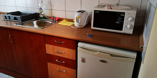 Read moreŚwietna opcja noclegu dla większego grona osób (do 6 osób). Jeden apartament zawiera 3 pokoje dwuosobowe, dwie łazienki i kuchnię. W łazienkach są prysznice, zlew i toaleta. W kuchni niewielka kuchenka z dwoma palnikami, zlewozmywak, lodówka, toster, kuchenka mikrofalowa. Jest też kilka garnków, talerze, szklanki i kubki, sztućce. I jest czysto! W pokojach są dwa łóżka które można połączyć w jedno duże, telewizor z lokalnym programem telewizyjnym, biurko, krzesła. Dwa pokoje mają również balkon. W korytarzu są szafy. I co najlepsze apartamenty te są w niedalekiej odległości od rynku (10-15 minut...