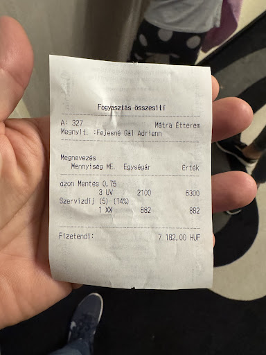Viszont az szálloda területén történő fogyasztás árait felháborítónak találtuk és nem tudom hova tenni hogy ilyen szoba árak mellett miért kell a vendégeket még jobban lehúzni. Legyen éttermi étel és ital árak, de azért kb 1100 Ft egy presszó kávéért és majd 3000 Ft egy húslevesért az azért felháborító, arról nem is beszélve hogy miért kell fizetni felszolgálási díjat (méghozzá nem is keveset, kb 20%-ot) azért hogy lefőzzenek egy kávét és kirakják elém a pultra vagy hogy lecsapoljanak egy pohár sört.