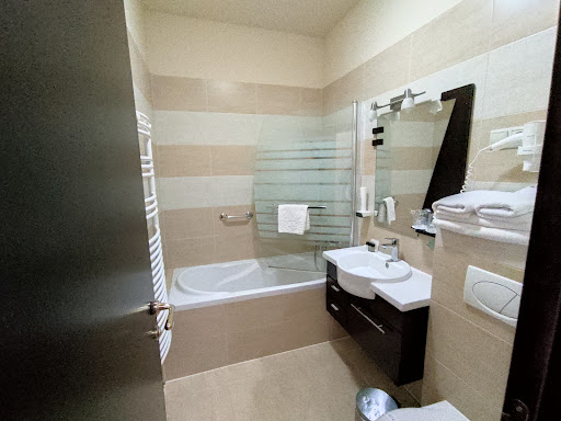 Read moreA szobafoglalás gördülékenyen ment. A recepciósok kedvesek és segítőkészek voltak. A gyógykezelésekre való bejelentkezés is gyorsan ment. A doktornő és a gyógyászati részlegen dolgozók elhivatott, nagyszerű szakemberek. Az első csalódás a parkolóban ért, csak a tűző napon van hely. Nincs se kerítés, se őrzés, de legalább fizetős. A management bömbijeinek jutott azért árnyék a bejáratnál. 😂 Következő csalódás a szoba volt. Hatalmas a kontraszt az épület impozáns külseje, a recepció csillogó berendezése és a szobák kissé avitt megjelenése között. Sárga és koszos falak, kicsi tér, hatalmas és sötét bútorok. "Kilátás" a medence üveg tetejére, amit minden reggel 7-kor egy hatalmas csattanással nyitottak ki. Nincs elég dugalj, vagy a kis lámpa ég, vagy a telefonodat töltöd. A klíma régi és hangos, a termosztát majdnem leesett a falról. A tv új és nagy, de a szekrény és a függöny kitakarja. A konyha részen nincs se mosogatószer, se szivacs, se egy kéztörlő. A fürdő viszonylag modern (a szobához képest), de a hajszárító csak hegyi levegőt fújt, a wc deszka nem maradt a helyén, a zuhany pedig fordítva van bekötve, így sikerült hideg zuhanyt venni első este. A vizes törölközőket, fürdőruhákat erkély hiányában nagyon nehéz volt megszárítani. A wellness részleg elfogadható. A személyzet kedves és figyelmes. Engem leginkább a művirágok zavartak. És a belső medence feletti üvegtetőn lévő pókhálók. Az ételek finomak, ugyan nem túl nagy a választék, ez főleg reggelinél unalmas a harmadik nap körül. Érdemes időben lemenni, mert voltak olyan vendégek, akik három gyerekkel éhen maradtak, mert fél 8-kor már alig volt valami a vacsorából. Az asztalnál jól jönne egy ital lap (elég magasak az árak), így nem érné meglepetés az embert a számla láttán. És egy kancsó hideg víz sem ártana alapból, kérés nélkül, főleg a 40 fokos kánikulában. A pincérek nagyon fiatalok, ugyanakkor kedvesek voltak és udvariasak. Mi csak egy "olcsó" standard szobát kértünk, gyógykezelésekkel. Megjegyzem, hogy a honlapon szereplő árak már nem érvényesek: 1900.- helyett 3000.-/nap/fő. Ezért kicsit másodrendű vendégnek éreztük magunkat, mert mi nem a flancos masszázsokat vettük igénybe. Minket senki nem ugrált körbe. A gyógyászati részleg egy klíma nélküli és ablaktalan alagsorban van (minden elismerésem az ott dolgozóknak, hogy ezek után tudnak mosolyogni), míg a fancy masszázs fent az emeleten, panorámás kilátással, klímával. A kedves személyzet, a finom ételek sem tudták feledtettni a csúnya szoba miatti csalódást és a...
