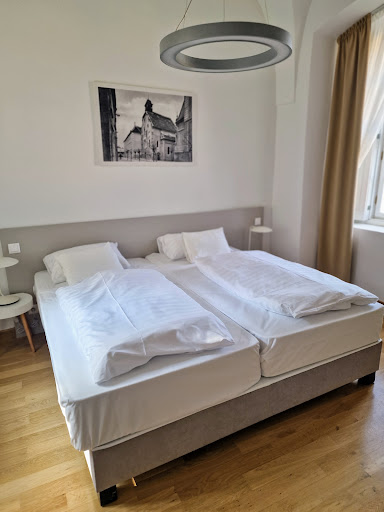 Read moreÖsszességében inkább pozitív volt a tapasztalat, az épület szerethető és igényesen, korhű módon felújított, a szobák pont annyira minimalisták, amennyire kell; a reggeli bőséges, a választék jó, a személyzet kedves. Fontos tudni, hogy nincs légkondi – szerencsére a többszáz éves falak jól tartják a relatíve hűvös hőmérsékletet és este lehet szellőztetni. Az viszont gond volt, hogy mivel műemléki épület, szúnyogháló sincs, vagyis szellőztetni csak teljes sötétségben lehet. Akinek pedig gondot okoz, hogy nincs sötétítés, az gondolja meg kétszer, ugyanis a függönyök nagyjából semmit nem oldanak meg, vagyis az első napsugaraktól kezdve a szobákban gyakorlatilag világos van. Nyáron ez ugye hajnali fél 5… Ez azért tud fájdalmas lenni. A spaletták segítenek valamit, csak akkor meg friss levegő nem jut be, ami meg – ismét csak nyáron – a hőség elleni egyetlen természetes védekezés lehetne. Összességében bőven ajánlható szálloda – ugyanakkor nagyon meglepő, hogy az üzemeltető nemzetközi cég nem küldött a távozás után „please tell us how you liked our hotel” kérdőívet… Ja és a parkolás: felesleges a botrányosan drága (napi 6500 forint) szállodai tarifát fizetni, két sarokra napi 800 forintért nyugodtan meg...