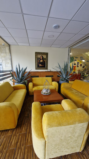 Bejárat, lobby: üvegportál, fotelek, szép, igényes.