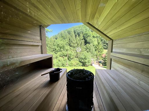 Read moreNyugodt, gyönyörű környezet. Május elején voltunk ekkor nagyon zöld minden, szemet / elmét nyugtatja a szépen ápolt fű és növények, a fenyők friss hajtásai. A ház tágas, modern mindennel felszerelt. Az óriási panoráma ablakon szinre berobban az élő kert, a fán fészkelő madarakkal. A szauna kialakítása kuriózum, nagyon különleges. Az erdő mellett belépve a másik oldalon az üvegfal itt is kitágítja a teret. Nappal és este is lenyügöző. A jacuzziban is sok időt el lehet tölteni, az egész kert, a domboldal nagyon privát. Azt is mondhatnám, hogy erre még a madár se jár, de ez nem igaz hisz egész nap csicseregnek. A környéken nagyot kirándultunk, szó szerint egy emberrel sem találkoztunk. Annak aki nyugalomra vágyik modern környezetben,- csak...