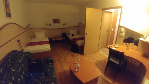 Read moreThe hotel is in a residential area (unusual for a hotel). It has a few parking spaces in front and a small parking lot in the inner courtyard. The rooms are large and spacious. The bathroom is okay and clean. The carpet in the room is quite worn. The rooms on the upper floor have a balcony, while the ground floor rooms have access to an inner courtyard (perfect for smokers). The pool is quite small, and the rubber lining was wrinkled.|A few major downsides: it was very difficult to communicate in English at the reception! The second downside is breakfast: plenty of fruit, but the rest of the dishes were limited in variety: only omelette, sausages, and wieners, a few types of cheese, and yogurt. For a 4-star location, this is too little. We arrived for breakfast on the first day at 9:10, and the food was almost gone, with no replenishments despite breakfast being served until 10:30 on weekends. What bothered me the most was the attitude of the lady who seemed to be the manager; she refused to serve a couple who arrived for breakfast at 10:15. She closed the door and drew the curtain. For dinner, the menu options were limited and expensive. We ordered a dish, they came back and proposed something else, then returned and proposed yet another option. As a result, we ate in the city for the rest...