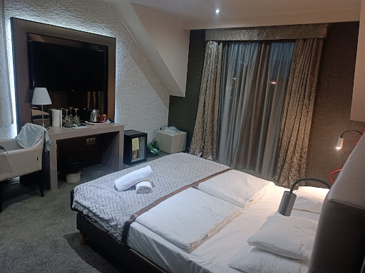 Read moreA szálloda nagyon szép, korszerű, modern és elegáns. A szoba nagyon tetszett, tágas átlag méretű volt, megvolt benne minden, ami egy hotelben szokott lenni. Az ágy kényelmes volt, a párnák úgyszintén. Klímával is fel vannak szerelve, bár mi tavasszal voltunk, így elég volt az erkélyen keresztül való szellőztetés. A szobában még található volt nagykijelzős TV, minibár, vízforraló, bögrék, kanalak, sima és boros poharak (bár dugóhúzó nem volt, csak sörnyitó). A fürdőszoba is nagyon szép, modern, természetesen pipereholmit adtak. Hajszárító is rendelkezésre áll. A mi szobánk csendes volt, mivel nem az utcafrontra nézett.