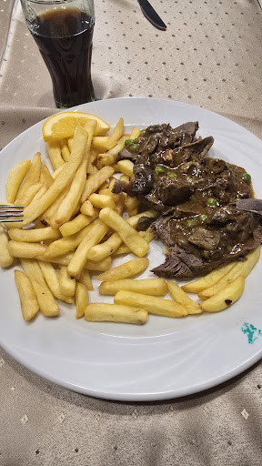 We came for dinner, ordered a plate for 2 (some fish, game plus chips and salads) together with children's menu. The food was ok, rather for 3 than 2 people (chips, rice, potato rings, 2 types of game and fish). However, the service was terrible. They don' t speak English, so it' s difficult to communicate when there's a problem...all 4 glasses were dirty, it looked like sb had forgotten to wash them up:( I asked a waitress to change the glasses, heard only " one moment, please" and that was all :( throughout our dinner nobody came to ask if everything is ok, the waitress avoided us and never came to our table... Finally, a waiter approached to clean the dishes and asked if we liked the food. I told him that the food was tasty but the service terrible- he responded in Hungarian, muttering something he knew I would never understand... What's more, he threw leftovers of rice on the floor and on the chairs! Who does such...
