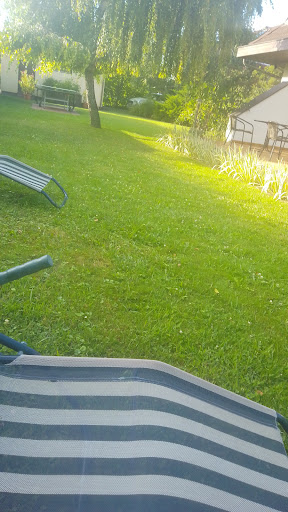 We stayed at this pension (by the way the name is written Gründner) after Villa Campana unexpectedly canceled our reservation. We really liked the Gründner with its big garden and big rooms, the owners helped us with everything: renting a bike, changing money. They also let us check out late afternoon for a nominal fee.||||The rooms are big and very clean, with nice bathrooms. Breakfast is the usual, but we also got sour cherry strudel, which was delicious. Also a complimentary plate of fresh cherries in our room!||||Probably the only thing against it is its location (900m from shore) as it's a bit far for walking. But if you care to drive a bit, or cycle, it's great, in a quiet residential area. Yes, the neighbourhood dogs do bark, that...