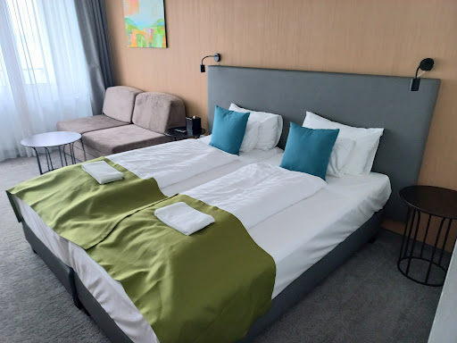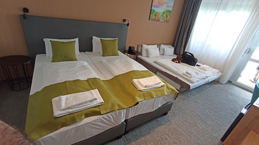 Szép, modern hotel, látszik, hogy nemrég volt felújítva. A szoba tiszta, és nagyon jól néz ki. Hatalmas pozitívum, hogy a tévében nem csak a 8 alap csatorna van, hanem van másik kb. 60 is, így legalább rossz idő esetén is biztosan van mit nézni. Viszont természetesen negatívumok is vannak. Az első kisebb negatív élmény rögtön érkezéskor ért, amikor is azt tapasztaltam, hogy a parkolóban az épület melletti parkolóhelyek bár bőven elég szélesek, de nagyon rövidek. Egy közepes méretű ferdehátúval az épület faláig tolattam, de az eleje még így is kissé kilógott. A második negatív élmény az ételekkel kapcsolatos. Ami az ételválasztékot illeti, mi többfajta főétel választási lehetőségre számítottunk volna egy ilyen drága helytől. Az ételek minősége egyébként eléggé változó, egyszer nagyon finomak és semmi gond nincs velük, máskor meg az előző nap este felszolgált röszti burgonyát másnap reggel ugyanúgy kiteszik, vagy éppen a reggeli rösztit kiteszik ugyanúgy este is. Egyébként vacsoránál csak vizet tölthetsz magadnak az italautomatából, minden mást a pincértől kell kérni és feláras! Na nem mintha a reggelinél kitölthető, borzasztóan felvizezett,(50-50%-ban vizet és gyümölcslevet tartalmazó) gyümölcslevek hiányoztak volna... Továbbá az is kicsit negatívan érintett, hogy bár a hotelnek van egy bejáró stégje, a tómeder a lejárótól számítva kb. 3 méterig van megkotorva, utána kellemetlenül iszapos, kagylós, hínáros. A wellness részleg egyébként rendben van, bár kicsit érdekes, hogy a gyerekek soha nem a gyerekmedencében vannak, hanem mindig a pezsgőfürdőbe jönnek be ugrálni és széjjel fröcskölni a relaxálni vágyókat. A szaunákra szerintem egy rossz szó aligha lehet. Van gőzkabin, infraszauna és egy bőséges helykínálatú finn szauna is, ahonnan gyönyörű a kilátás a Balatonra. Összességében véve, a pozitívumok magukért beszélnek, a negatívumok pedig csak kicsi hibák amik belerondítanak az egyébként ígéretes összképbe. Végtére is ez egy...