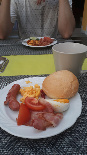 Food: Breakfast - cereal, fresh bread roll,salami, ham, cheese, scrambled eggs, bacon, sausage(althought more like hot dog sausage) hot sandwiches, savory and sweet pastries, pancakes, cucumber, tomatoes, peppers, lettuce, yoghurts, large selection of fruits (apple,watermelon,banana etc) fruit juice, tea, coffee, hot chocolate. Included in the stay. I was worried having read the reviews, but honestly it was a good breakfast.