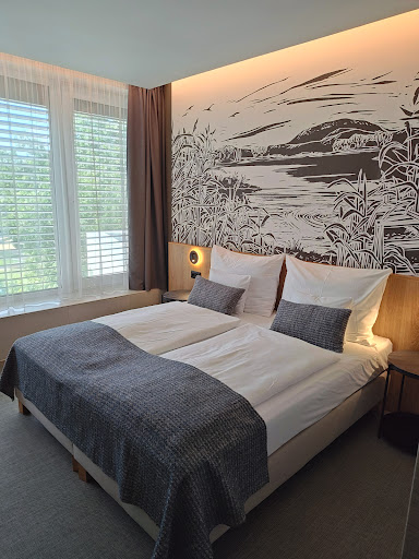 Read moreHotel in modern style and interior design with spacious rooms, with everything that you can expect in similar hotels. We liked closed parking for cars, also with charging stations. And separate storage for bicycles with electrical outlets to charge electric bikes. (There are a lot cycling opportunities, also around nearby lake.)||Food was excellent with medium variety for breakfast, but all very tasteful. Dinner was “a la carte”, with enough variety for one week, and also everything very delicious. ||Wellness is not very large, but enough to enjoy sauna and whirlpool and relax in quiet spa. There are free sheets and towels available in Wellness. ||The staff is very friendly, polite and helpful if you need their assistance. ||Nice surprise from hotel was coupon for free coffee and cake at nearby Coffeeshop Lazuli, with large varieties...