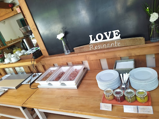 Rosinante has great food for lunch and dinner - the menu is not huge, but there is enough to choose from, and the quality of the food is very good with occasional stellar surprises. In particular the lecsó (a classic, basic Hungarian dish) is a must-have, as is the gulyás bean soup. The turógombóc (quark balls, yes) dessert is to die for. The wine-list is similarly compact, but excellent. Be aware that the three-course option can be very filling, we ended up going a la carte after the first evening. The breakfast is buffet style, tasty and quite extensive, with freshly made egg varieties for those who wish so.