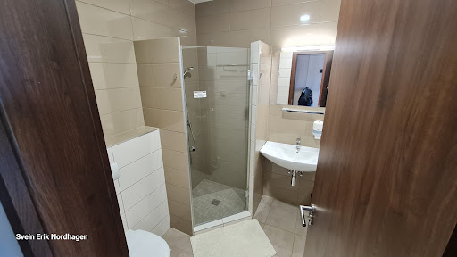 Read moreÜdvözlet Mindenkinek! A szállásra a Bookingon találtam rá, abszolút korrektnek tűnt, látvány és ár-érték arány tekintetében. Ám érkezéskor rendkívüli csalódást okozott. A nívós épület előtt, a kerítésen belül, másik “építmény”; a parkoló teljesen megtelve, munkás emberek százai cigarettával a kezükben a bejáratnál - félre értés ne essék, ezzel semmi gond, hiszen mi magunk is kétkezű, munkás emberek vagyunk!!!! Csakhogy ami fogadott bennünket az inkább keltette munkásszálló látványát, érzését, mint azt, amit hírdetnek. Nem vettük igénybe a szolgáltatást és én nem is ajánlom nyugodt...