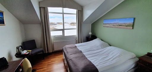 Read moreNo doubt it is one of the most affordable hotels in this Lake Myvatn area, because it offers family room which accommodates up to 4 adults. I travelled with my spouse and 2 teenagers, so family room is a right choice of room for us. I stayed in room 212 for a night. The room was huge with 4 single beds and a small living room.||Location of the hotel is good, opposite the attraction Skútustaðagígar in Lake Myvatn. However, this area is full of midges flying around in the outdoor area and it could be very irritating walking outdoor. I saw some people came prepared with insect netting covering their head while walking outdoor, this is a tip for others. ||The room and beds were clean, but the furniture was aged and dated, some refurbishment would be good. No refrigerator provided in the room. The water temperature in the bathroom was not hot, no communication in the room/bathroom provided that guest must keep the water running for some time in order to enable slightly warmer water to be supplied through their water pump system. We have to call reception to complain before we were told to use the above method to obtain hot water for shower. ||The restaurant here served reasonably good selection of food. We had our dinner here given there wasn't many restaurant choices around this area. Breakfast was decent but no puff pastries (like...