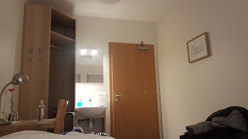 The room is adequate and it's nice that you get an in-room sink, but there are not toilets in all rooms. All toilets and showers are together, and there are only 3 of them. It is very likely that they will all be in use at the same time, which is frustrating. It would be nice if there was even just one toilet separately to avoid this issue. They are also wet bathrooms, meaning the shower isn't fully enclosed and water gets everywhere. I found it difficult to figure out how to keep my clothes dry and also not track water everywhere after I got out. They provide a large squeegee for the floor, but it was still a challenge. You have to pay for breakfast separately and quite frankly it's not worth the extra cost. They keep refrigerated things (such as cream cheese, juice, hard boiled eggs, etc) in a cooler, which (at least when I was there) doesn't work, so they sit unrefrigerated for hours. I decided that was too risky and went for the shelf stable breakfast items, but again it wasn't really worth the extra cost. There is a large fridge in the kitchen which I used to keep a couple small items cold while I was there. The rooms themselves are adequate but basic; usually there is a TV in most places, but that was not the case here. It wasn't the end of the world, but worth mentioning. Also, it snowed quite heavily right as I was arriving and just outside the entrance door turned to ice. That was not cleared or salted by the time I left, so it was very slick. My advice: stay...