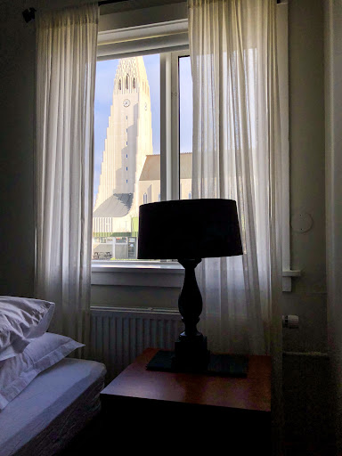 Near Hallgrimskirkja, so downtown. Rooms have limited old electrical outlets with power strips. The outlet sparked when I plugged in my phone. The church bells ring every 15 minutes (charming) but stops at 9 pm, so you can sleep. However, our sleep was very poor. The neighbor was blasting loud music (a live band?) until 1:30 am. Finally, we fell asleep only to be awakened by a blaring fire alarm at 3:30 in the morning. All guests evacuated to the outside in the 48 degrees weather with only pajamas on. No fire department came. Only a man appeared running in from the street after 10 minutes. He entered the house and shut the alarm off. We were not told why the alarm went off or that it was safe. No apologies. We did not know who he was, nor did he clarify his identity. We all went in and attempted to sleep again but it was too late. The sky was bright and the guests were awake and restless after this chilling disturbance. Many began showering. Others packed and left, creating more loud noise. The front door is old and heavy and sticks, so guests on the first floor do not sleep with the constant slamming. In the morning, the man who shut off the alarm was at the desk for check out. He offered no refund or discount, only two water bottles and granola bars for the inconvenience of having no sleep. Haha. I declined. Poor awareness of hospitality and customer service. After all, people stay here only to sleep, so actually getting sleep is essential to a business that offers only a bed and nothing else. There is no spa, hot tub, sauna, or breakfast offered here, only noisy rooms with no furniture for suitcases and no outlets for modern electronics....