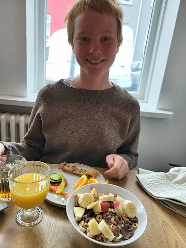 Of course, there are the typical sliced cucumbers and tomatoes thick cut and half frozen. There were no eggs, but when I asked, they brought out four boiled eggs for all people. There are also some cereals and yogurt—nothing special, just the absolute basics. I don’t understand the approach to these breakfasts. Day after day, it’s the same thing. In other hotels, whether more expensive or cheaper, there’s always a better selection. I’m here for work, and this is not my first time in Iceland, but I’ve never seen such a disappointing breakfast...